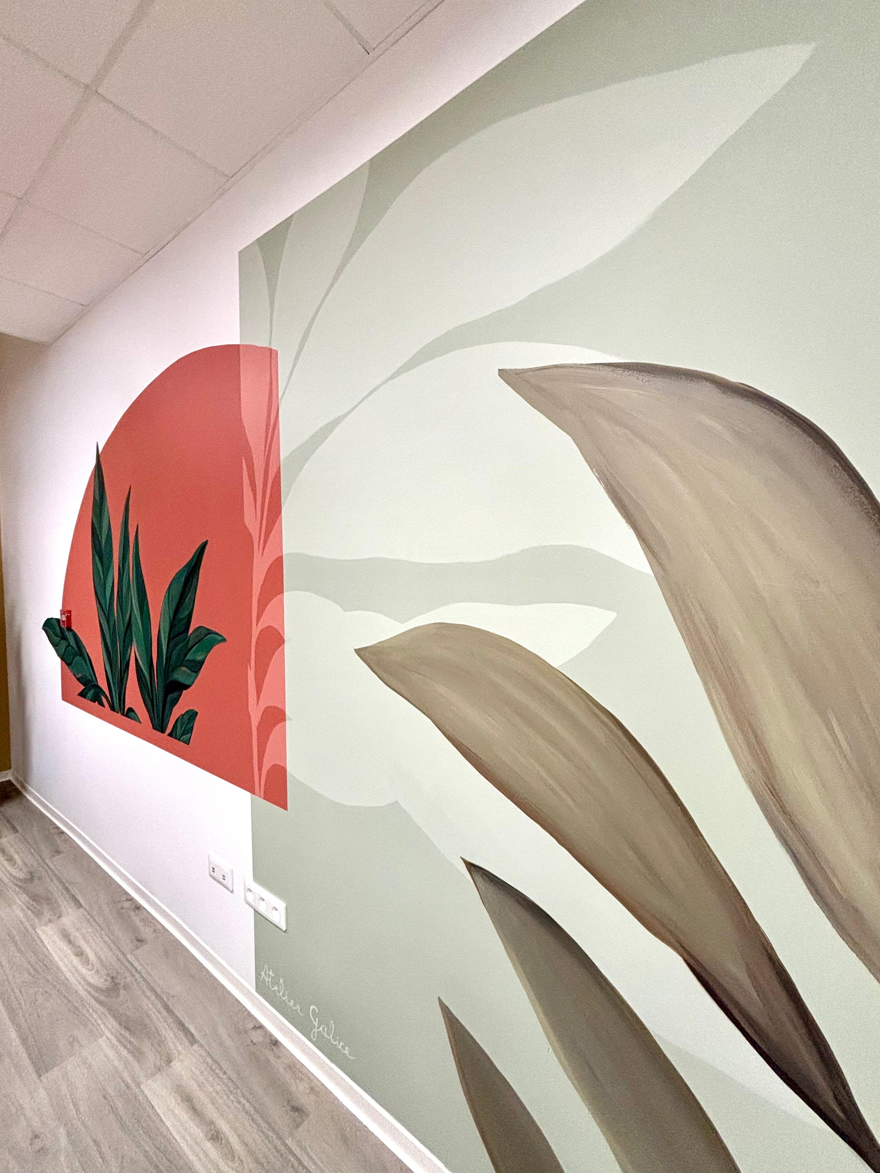 ... et je suis une artiste peintre passionnée, spécialisée dans la création de fresques murales. Depuis plus de quatre ans, j'ai eu le privilège de transformer des espaces ordinaires en véritables œuvres d'art. Mon parcours artistique a débuté à la faculté de Lettres et d'Arts plastiques d'Aix-en-Provence, où j'ai développé mon amour pour la couleur, la texture et la composition.